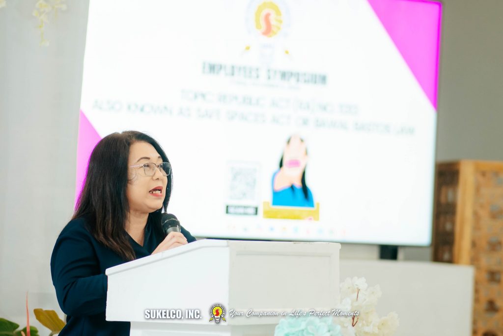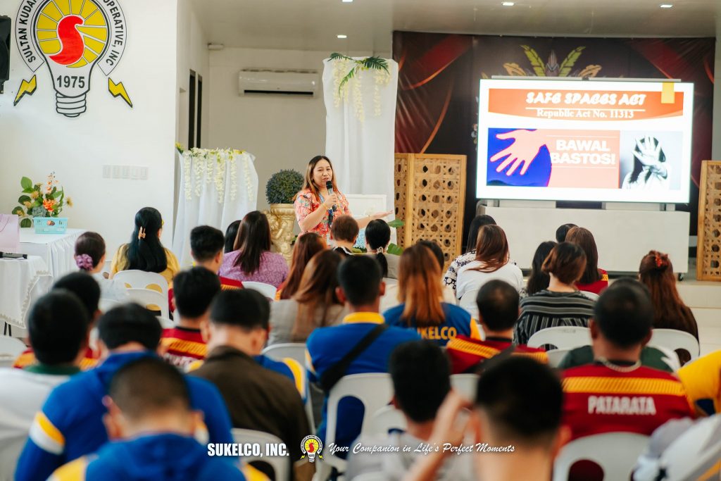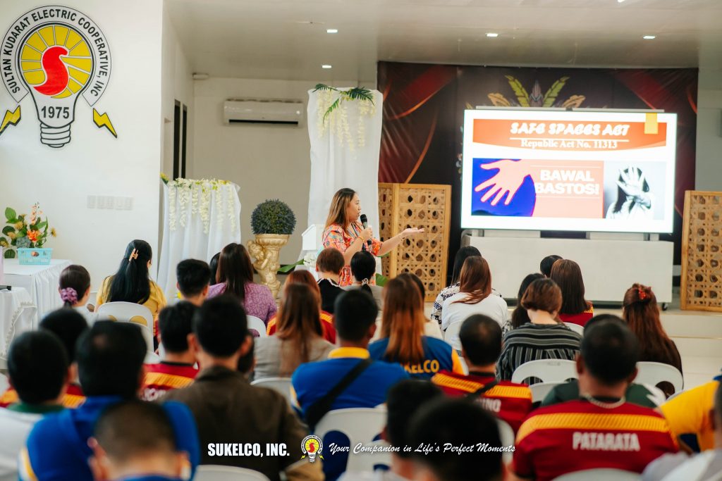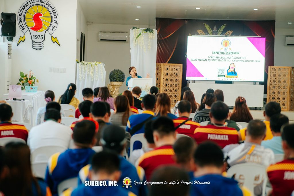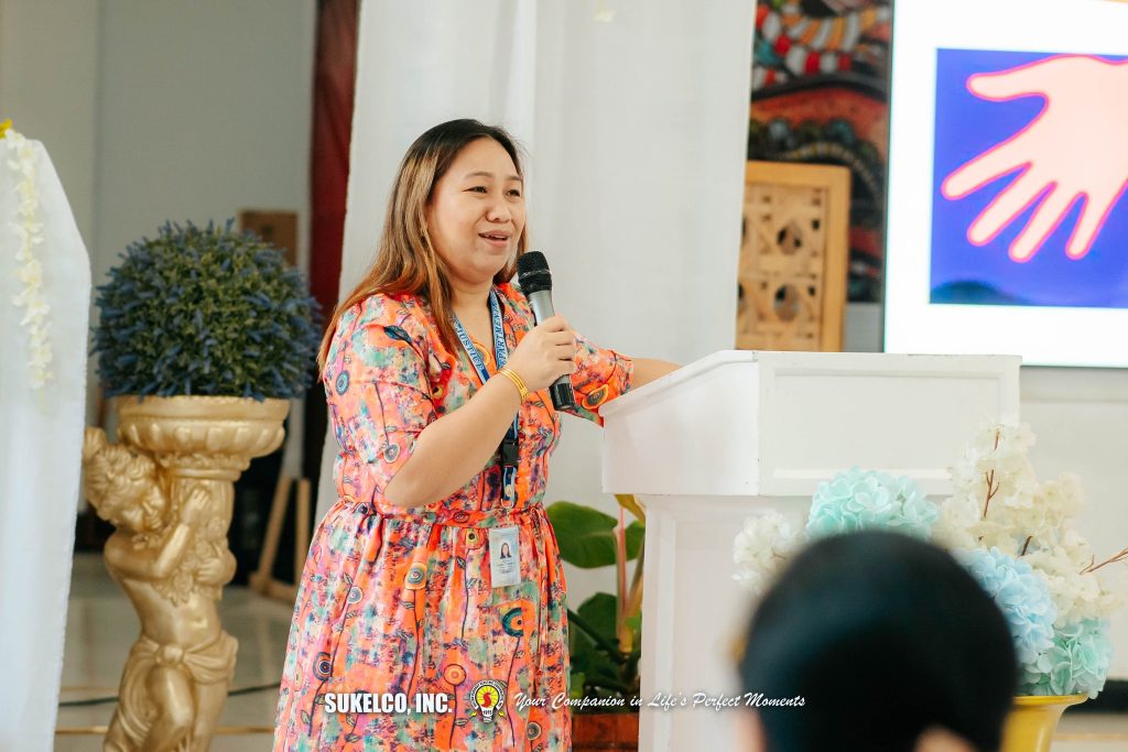 The program began with a solemn Holy Mass, followed by the Employees’ Symposium. SUKELCO’s Corporate Planning Department Manager, Janet S. Collado delivered an opening message while Ms. Nancy Bawe, the City Social Welfare Development Officer, provided the rationale of the symposium. Atty. Ronaisa L. Camendan, Prosecution Attorney from the Office of the City Prosecutor of Tacurong City, served as the resource speaker. Her presentation focused on employee rights, emphasizing the importance of maintaining a safe and respectful work environment in compliance with the Safe Spaces Act.